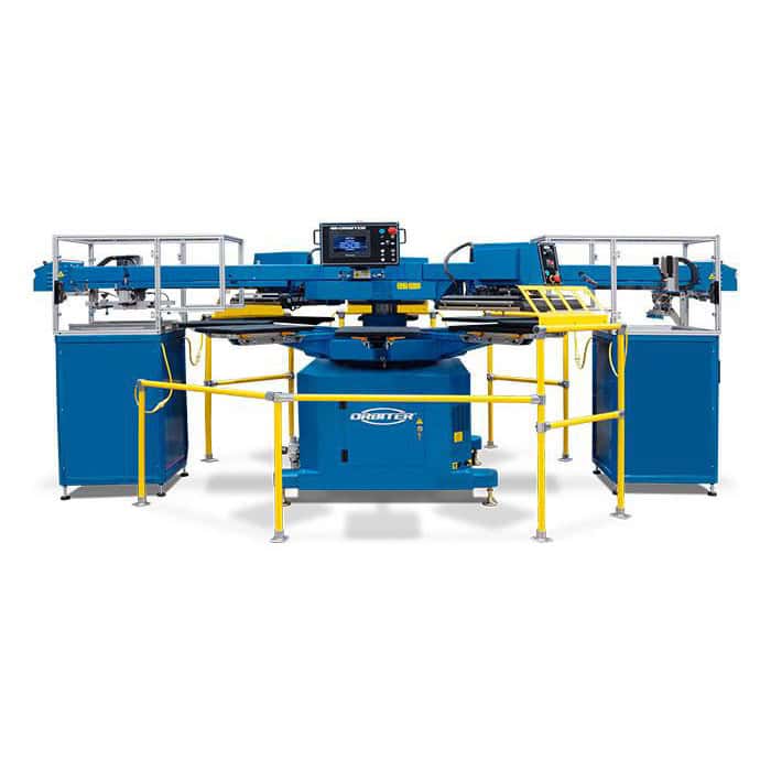 The M&R ORBITER™ Automatic Direct to Film (DTF) Application System is a versatile rotary heat transfer machine. The ORBITER is specifically engineered to support the M&R QUATRO™ DTF product line. The design encompasses 40 years of M&R carousel machine engineering with precision pressure and speed upgrades necessary to support optimal DTF transfer application. With a full-colour touchscreen HMI, adjustable place and peel settings, and robust, reinforced construction, the ORBITER is adaptable to all your application requirements.